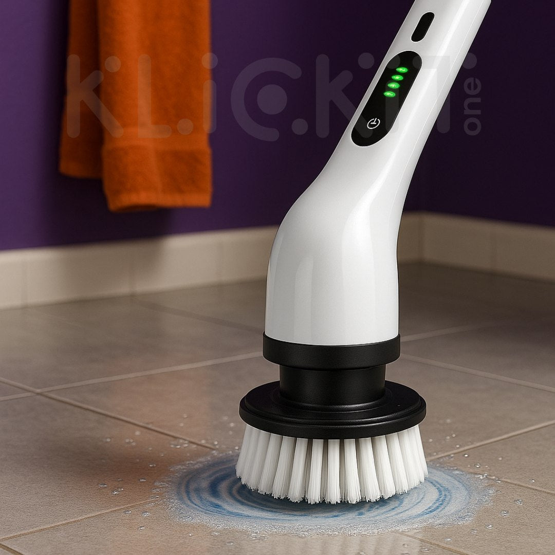 El Cepillo 9 en 1 de Klickitone es la solución. Con su potente motor de 25W y 9 cabezales intercambiables, elimina la suciedad más difícil en cualquier superficie: desde azulejos hasta rincones de difícil acceso, todo sin el cansancio de los métodos tradicionales.