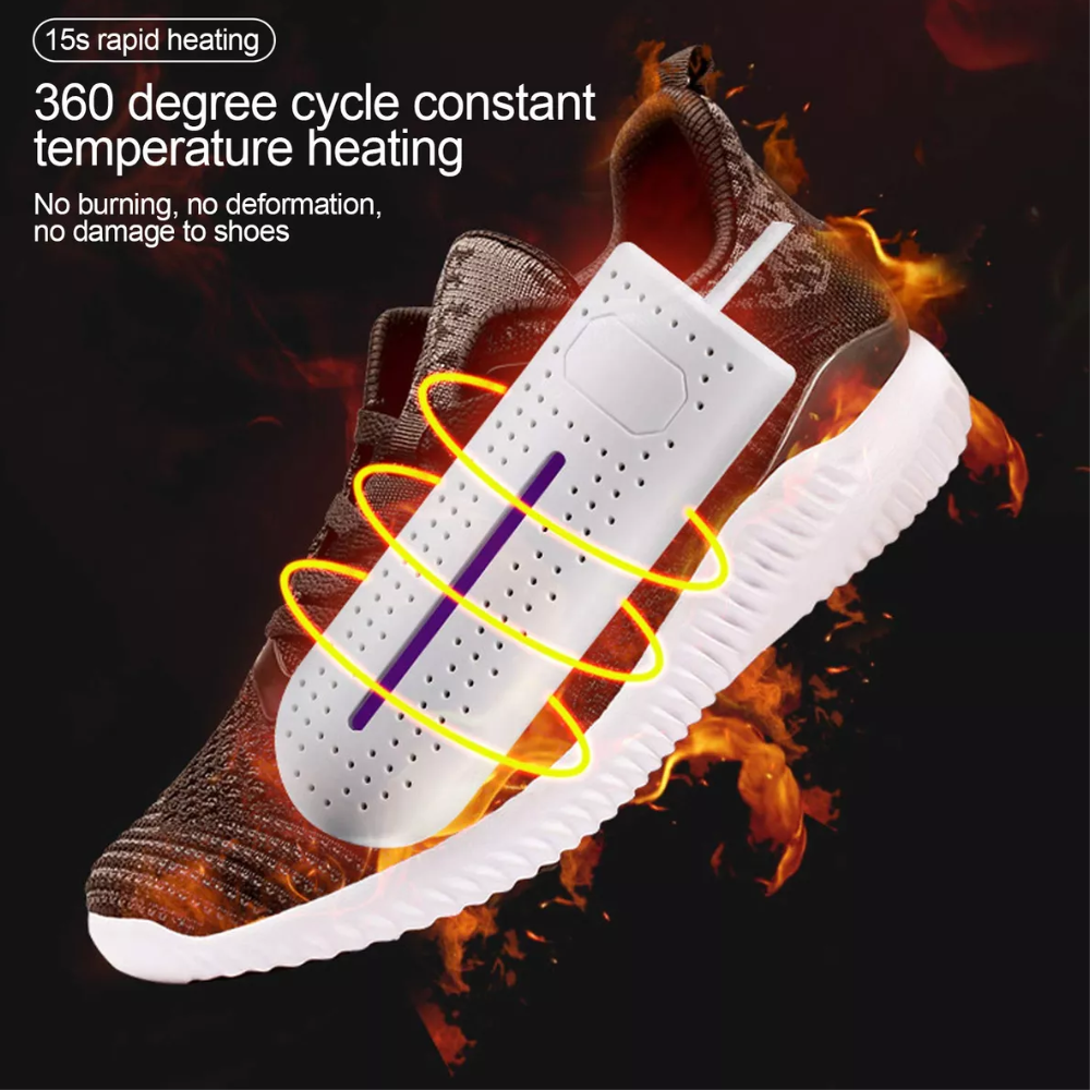 El Secador de Zapatos utiliza tecnología de calentamiento PTC y luz germicida para secar tus zapatos rápidamente y, a la vez, eliminar las bacterias que causan el mal olor. Disfruta de la comodidad y la seguridad de unos zapatos frescos y secos cada día. ¡Recupera la frescura en tus pies!